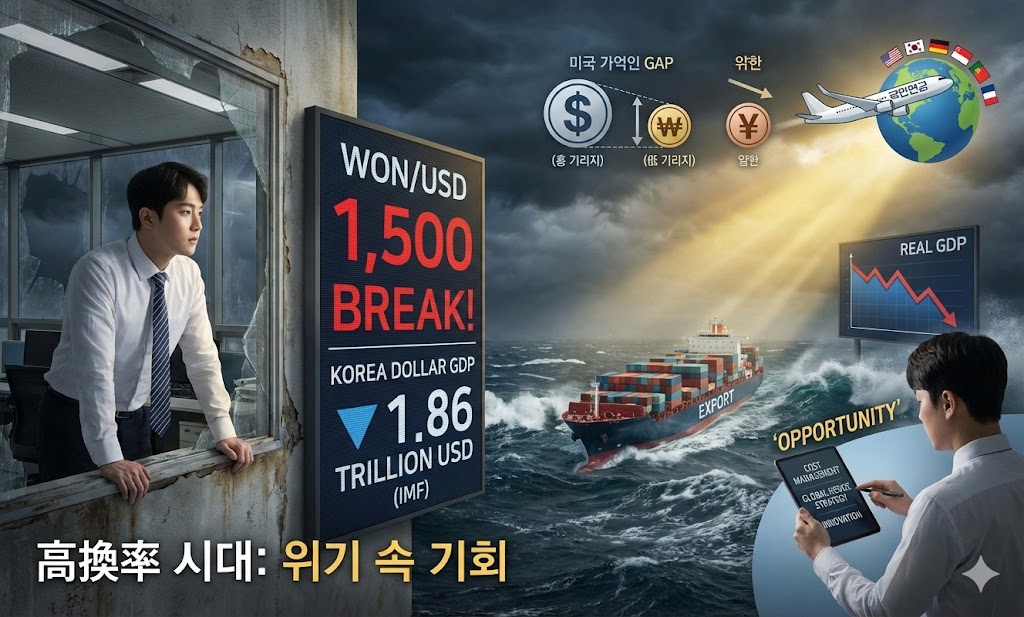 국제통화기금(IMF)이 올해 우리나라 달러 환산 명목 국내총생산(GDP)이 뒷걸음질할 것이라고 전망했습니다. 실질 경제성장률은 잠재성장률에도 못 미치고, 원/달러 환율은 치솟으면서 지난해보다 0.9% 감소한 1조 8천586억 달러를 기록할 것으로 추산됩니다. 이는 단순히 거시 경제 지표의 하락을 넘어 우리가 직면해야 할 '고환율 시대' 현실과 그 속에서 파생될 위기이자 기회를 명확히 제시합니다.